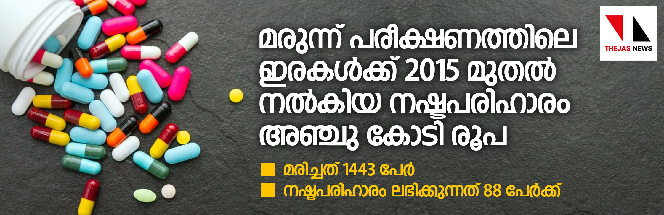 മരുന്ന് പരീക്ഷണത്തിലെ ഇരകള്ക്ക് 2015 മുതല് നല്കിയ നഷ്ടപരിഹാരം 5 കോടി രൂപ