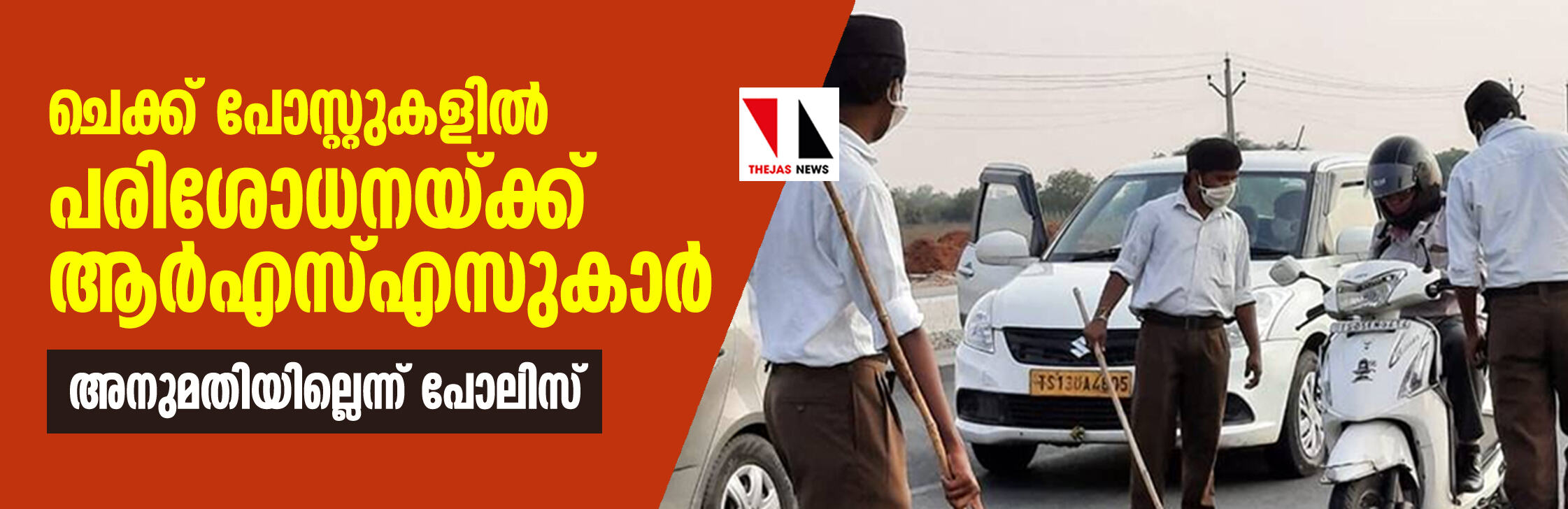 ചെക്ക് പോസ്റ്റുകളില് പരിശോധനയ്ക്ക് ആര്എസ്എസുകാര്; അനുമതിയില്ലെന്ന് പോലിസ്