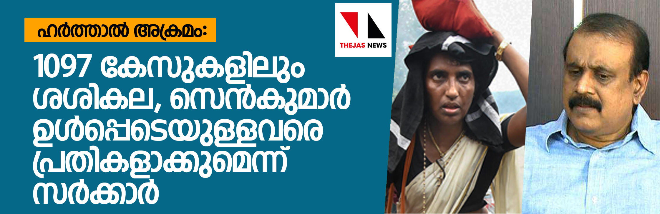 ഹര്ത്താല് അക്രമം: 1097 കേസുകളിലും ശശികല, സെന്കുമാര് ഉള്പ്പെടെയുള്ളവരെ പ്രതികളാക്കുമെന്ന് സര്ക്കാര്