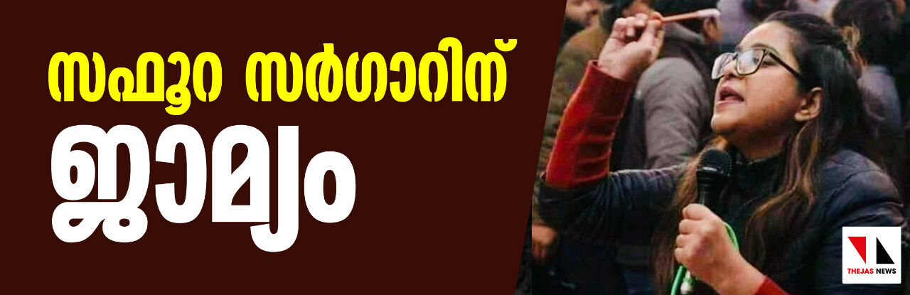 സഫൂറ സര്ഗാറിന് ഒടുവില് ജാമ്യം