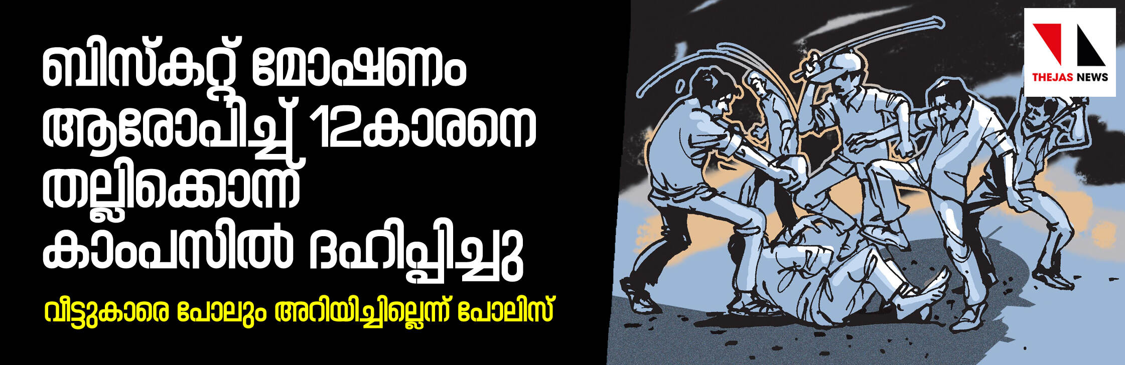ബിസ്കറ്റ് മോഷണം ആരോപിച്ച് 12കാരനെ തല്ലിക്കൊന്ന് കാംപസില് ദഹിപ്പിച്ചു