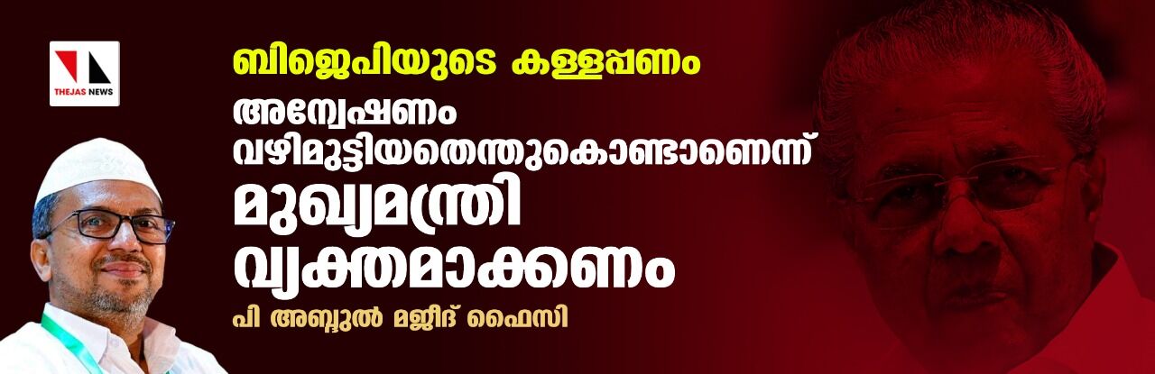 ബിജെപിയുടെ കള്ളപ്പണം:അന്വേഷണം വഴിമുട്ടിയതെന്തുകൊണ്ടാണെന്ന് മുഖ്യമന്ത്രി വ്യക്തമാക്കണം- പി അബ്ദുല് മജീദ് ഫൈസി