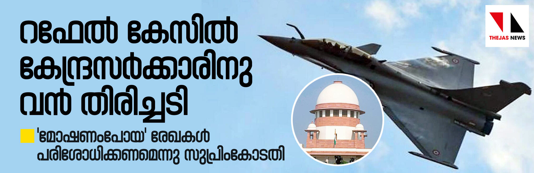 റഫേല് കേസില് കേന്ദ്ര സര്ക്കാരിന് വന് തിരിച്ചടി