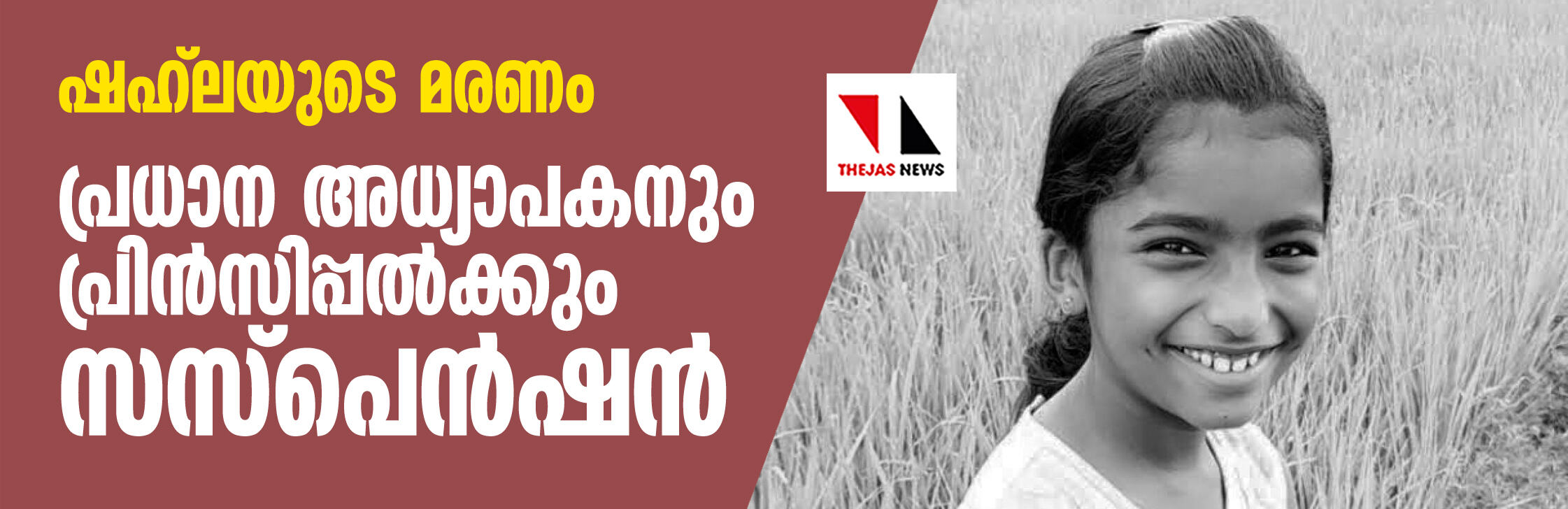 ഷഹ്ലയുടെ മരണം: പ്രധാന അധ്യാപകനും പ്രിന്സിപ്പല്ക്കും സസ്പെന്ഷന്