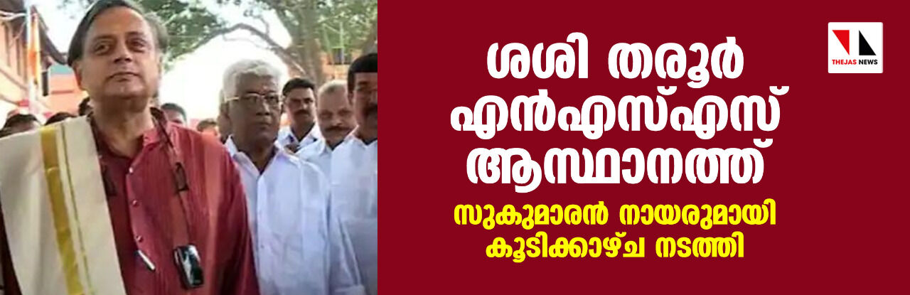 ശശി തരൂര് എന്എസ്എസ് ആസ്ഥാനത്ത്; സുകുമാരന് നായരുമായി കൂടിക്കാഴ്ച നടത്തി