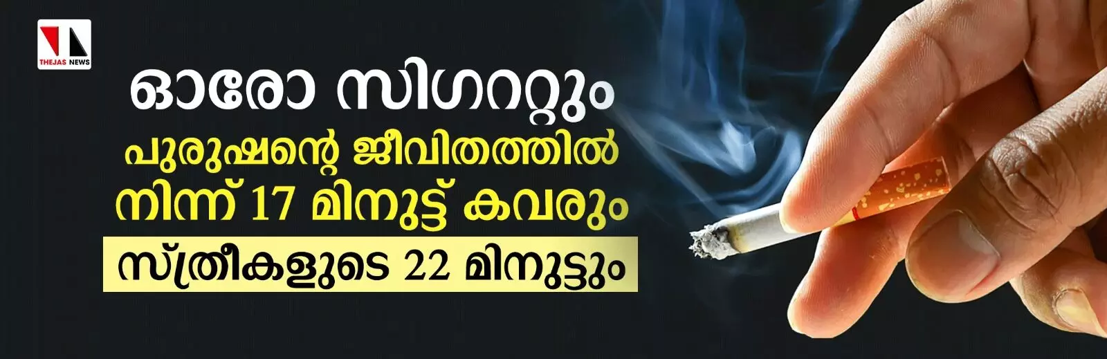ഓരോ സിഗററ്റും പുരുഷന്റെ ജീവിതത്തില് നിന്ന് 17 മിനിട്ട് കവരും; സ്ത്രീകളുടെ 22 മിനിട്ടും