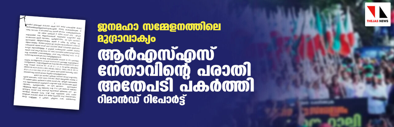 ജനമഹാ സമ്മേളനത്തിലെ മുദ്രാവാക്യം: ആര്എസ്എസ് നേതാവിന്റെ പരാതി അതേപടി പകര്ത്തി റിമാന്ഡ് റിപോര്ട്ട്