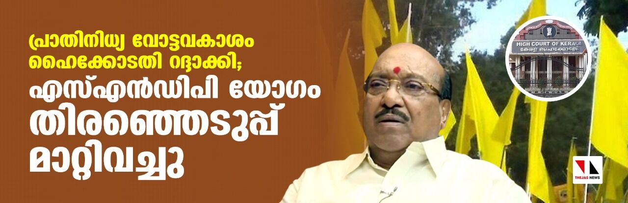 പ്രാതിനിധ്യ വോട്ടവകാശം ഹൈക്കോടതി റദ്ദാക്കി; എസ്എൻഡിപി യോഗം തിരഞ്ഞെടുപ്പ് മാറ്റിവെച്ചു