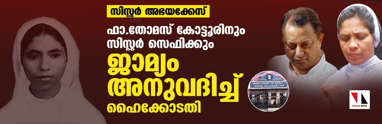 സിസ്റ്റര് അഭയക്കേസ്: ഫാ.തോമസ് കോട്ടൂരിനും സിസ്റ്റര് സെഫിക്കും ജാമ്യം അനുവദിച്ച് ഹൈക്കോടതി