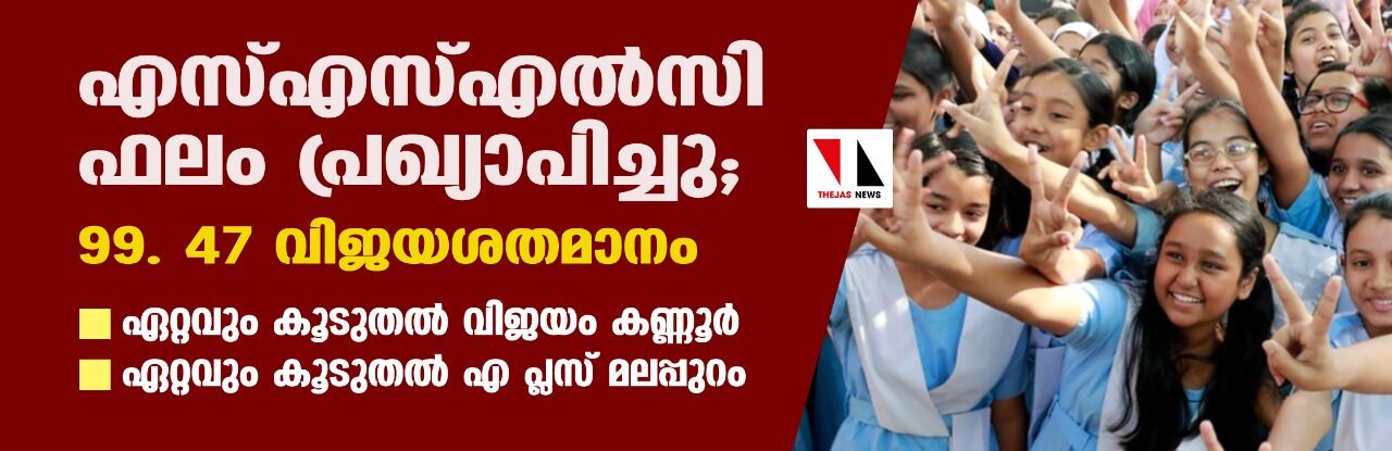എസ്എസ്എല്സി ഫലം പ്രഖ്യാപിച്ചു; 99. 47 വിജയശതമാനം