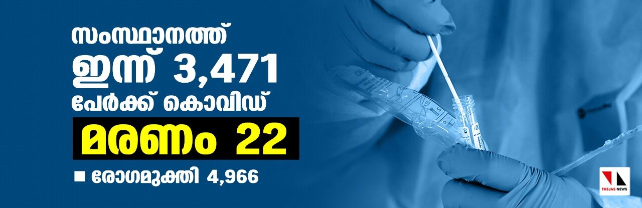 സംസ്ഥാനത്ത് ഇന്ന് 3471 പേര്ക്ക് കൊവിഡ്; മരണം 22