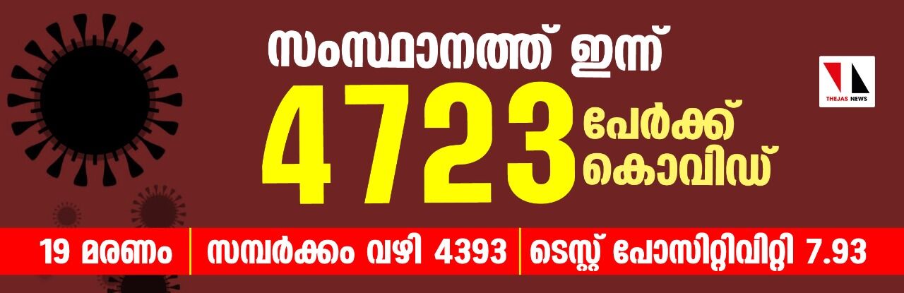 സംസ്ഥാനത്ത് ഇന്ന് 4723 പേര്ക്ക് കൊവിഡ്; മരണം 19; ആകെ മരണം 40,132