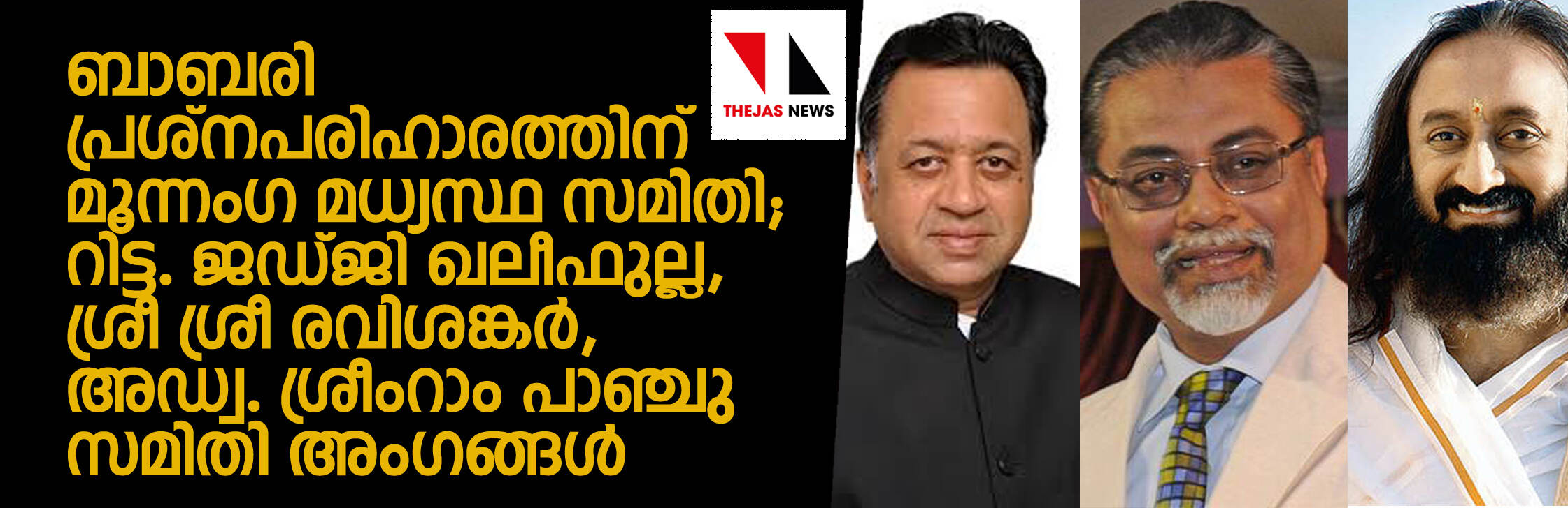 ബാബരി പ്രശ്നപരിഹാരത്തിന് മൂന്നംഗ മധ്യസ്ഥ സമിതി; റിട്ട. ജഡ്ജി ഖലീഫുല്ല, ശ്രീ ശ്രീ രവിശങ്കര്, അഡ്വ. ശ്രീരാം പാഞ്ചു സമിതി അംഗങ്ങള്