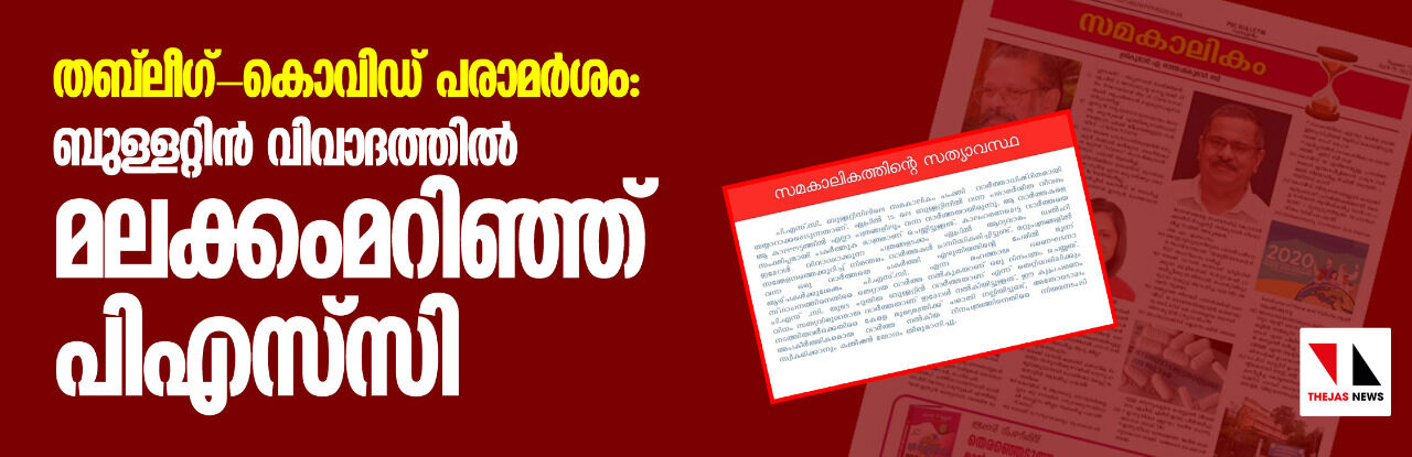 തബ് ലീഗ്-കൊവിഡ് പരാമര്ശം: ബുള്ളറ്റിന് വിവാദത്തില് മലക്കംമറിഞ്ഞ് പിഎസ് സി