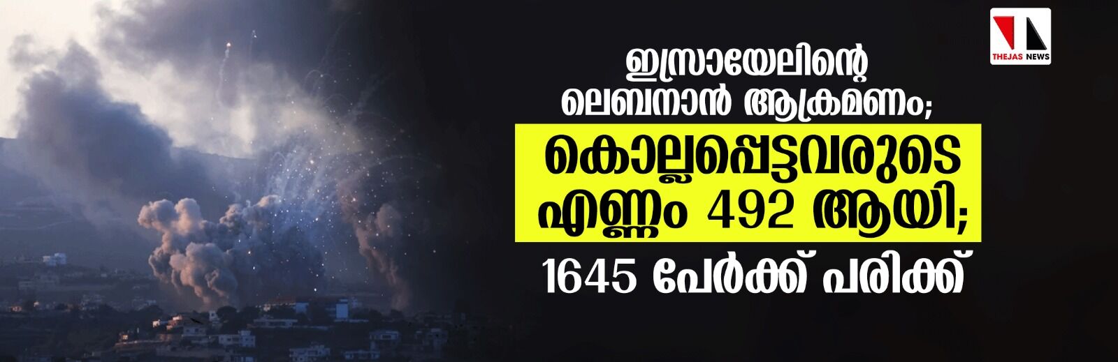 ഇസ്രായേലിന്റെ ലെബനന് ആക്രമണം; കൊല്ലപ്പെട്ടവരുടെ എണ്ണം 492 ആയി; 1645 പേര്ക്ക് പരിക്ക്