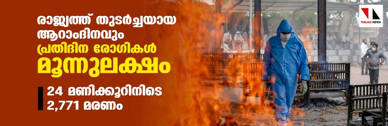 രാജ്യത്ത് തുടര്ച്ചയായ ആറാം ദിനവും പ്രതിദിന രോഗികള് മൂന്നുലക്ഷം; 24 മണിക്കൂറിനിടെ 2,771 മരണം