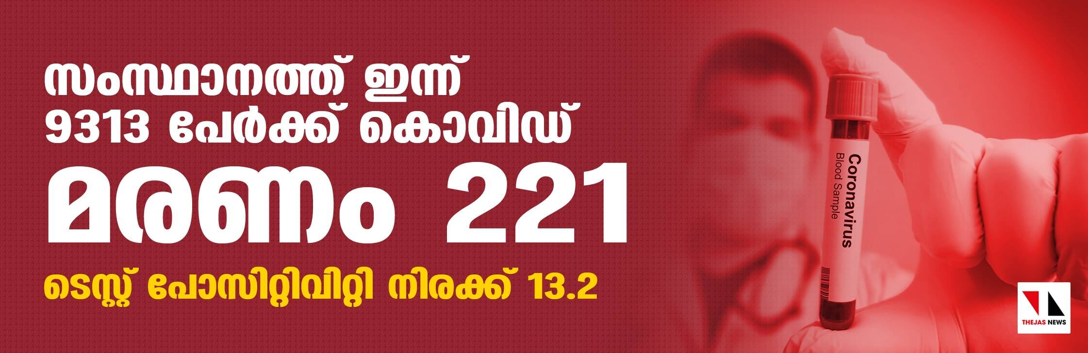 സംസ്ഥാനത്ത് ഇന്ന് 9313 പേര്ക്ക് കൊവിഡ്; മരണം 221; ആകെ മരണം 10,157