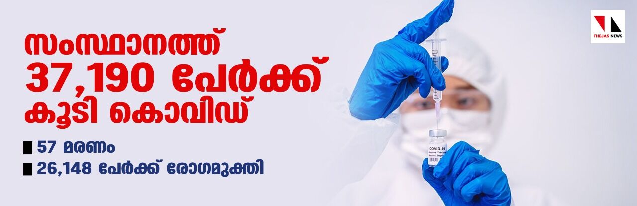 കൊവിഡ് കുതിക്കുന്നു; സംസ്ഥാനത്ത് ഇന്ന് 37,190 പേര്ക്ക് കൊവിഡ്, ടെസ്റ്റ് പോസിറ്റിവിറ്റി 26.08