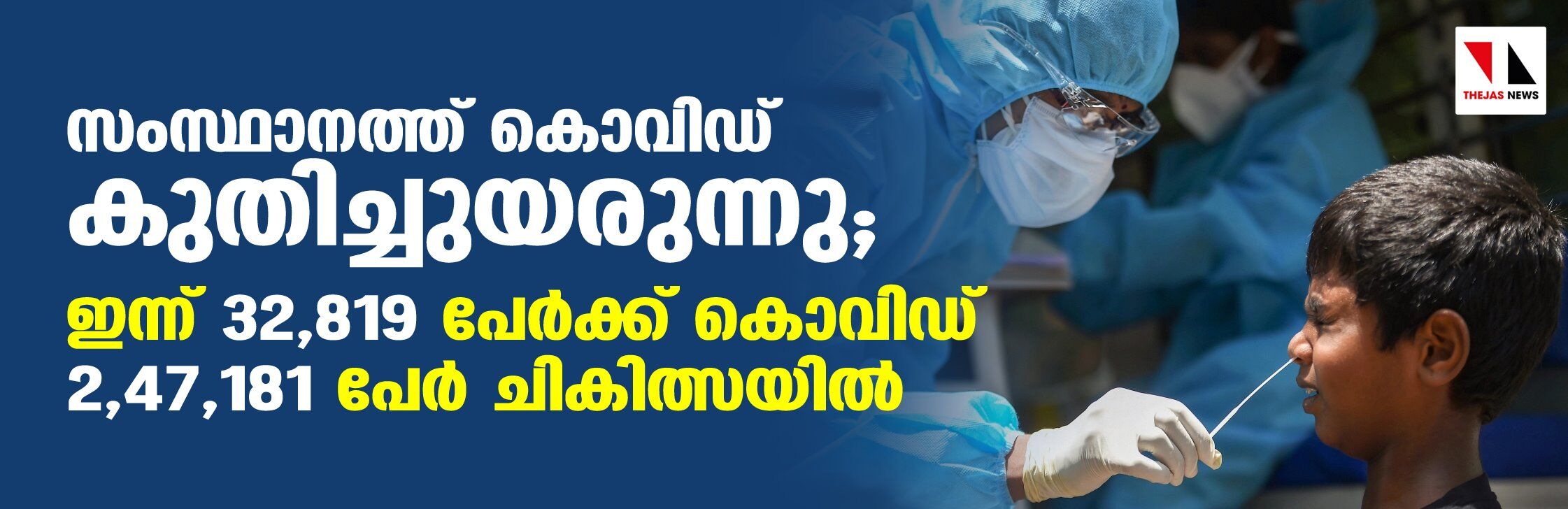 സംസ്ഥാനത്ത് റെക്കോര്ഡ് പ്രതിദിന വര്ധനവ്: ഇന്ന് 32819 പേര്ക്ക് കൊവിഡ്; 2,47,181 പേര് ചികിത്സയില്