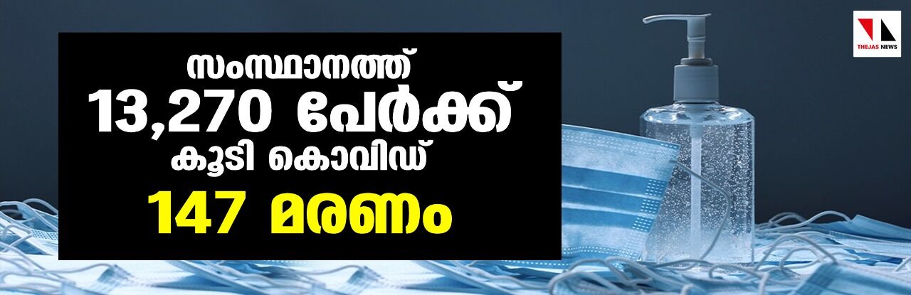 സംസ്ഥാനത്ത് ഇന്ന് 13,270 പേര്ക്ക് കൊവിഡ്; ടെസ്റ്റ് പോസിറ്റിവിറ്റി നിരക്ക് 11.79; മരണം 147