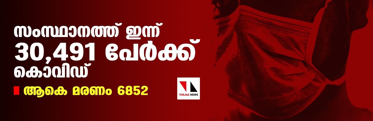 സംസ്ഥാനത്ത് ഇന്ന് 30,491 പേര്ക്ക് കൊവിഡ്; ടെസ്റ്റ് പോസിറ്റിവിറ്റി നിരക്ക് 23.18