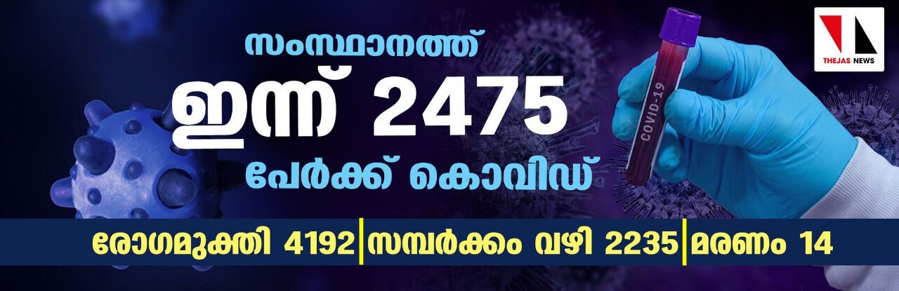 സംസ്ഥാനത്ത് ഇന്ന് 2475 പേര്ക്ക് കൊവിഡ്, 4192 പേര് രോഗമുക്തി നേടി; ചികിത്സയിലുള്ളവര് 35,418
