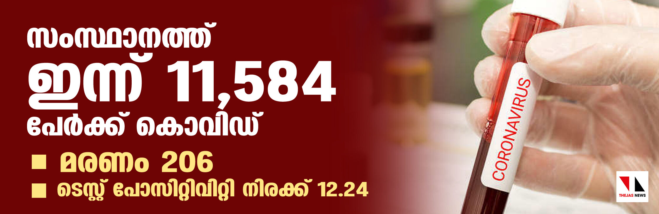 സംസ്ഥാനത്ത് ഇന്ന് 11,584 പേര്ക്ക് കൊവിഡ്; മരണം 206; ആകെ മരണം 11,181