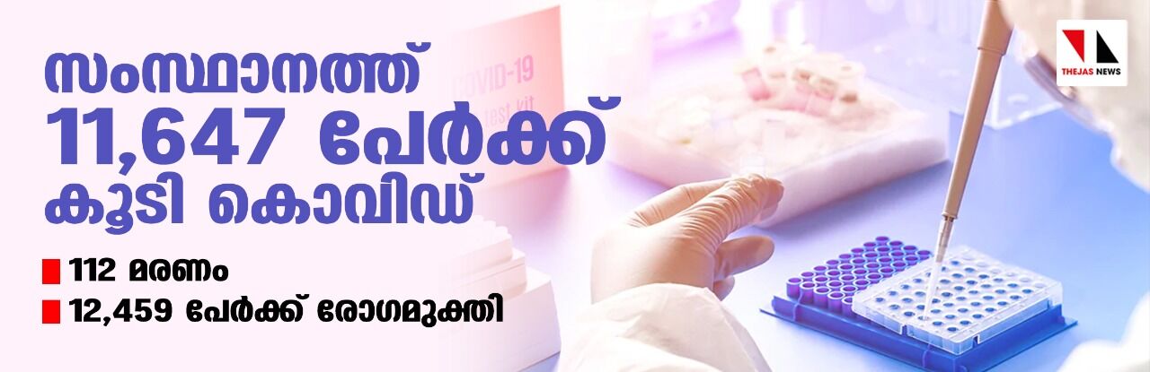 സംസ്ഥാനത്ത് ഇന്ന് 11,647 പേര്ക്ക് കൊവിഡ്; മരണം 112; ആകെ മരണം 12,060