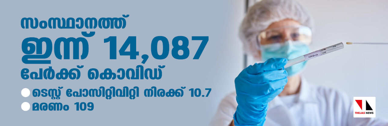 സംസ്ഥാനത്ത് ഇന്ന് 14,087 പേര്ക്ക് കൊവിഡ്; ടെസ്റ്റ് പോസിറ്റിവിറ്റി നിരക്ക് 10.7; മരണം 109