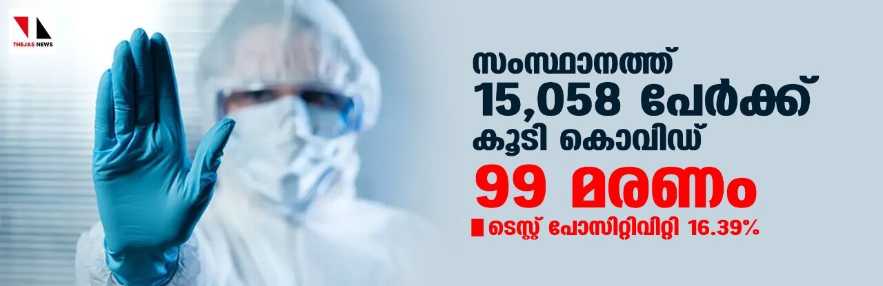 സംസ്ഥാനത്ത് ഇന്ന് 15,058 പേര്ക്ക് കൊവിഡ്; ടെസ്റ്റ് പോസിറ്റിവിറ്റി നിരക്ക് 16.39; മരണം 99