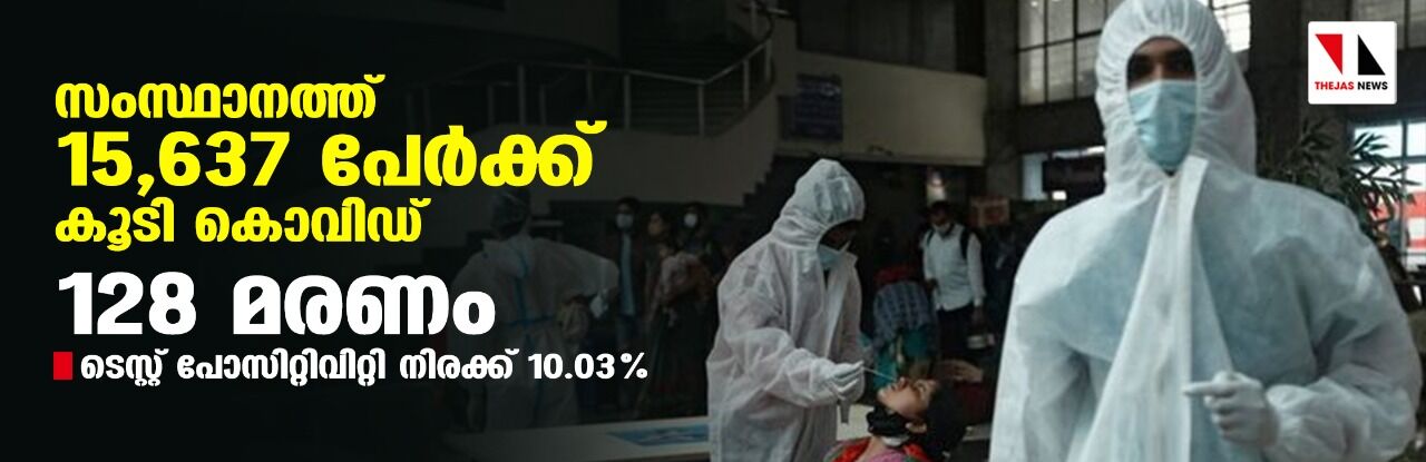 സംസ്ഥാനത്ത് ഇന്ന് 15,637 പേര്ക്ക് കൊവിഡ്; ടെസ്റ്റ് പോസിറ്റിവിറ്റി നിരക്ക് 10.03;മരണം 128