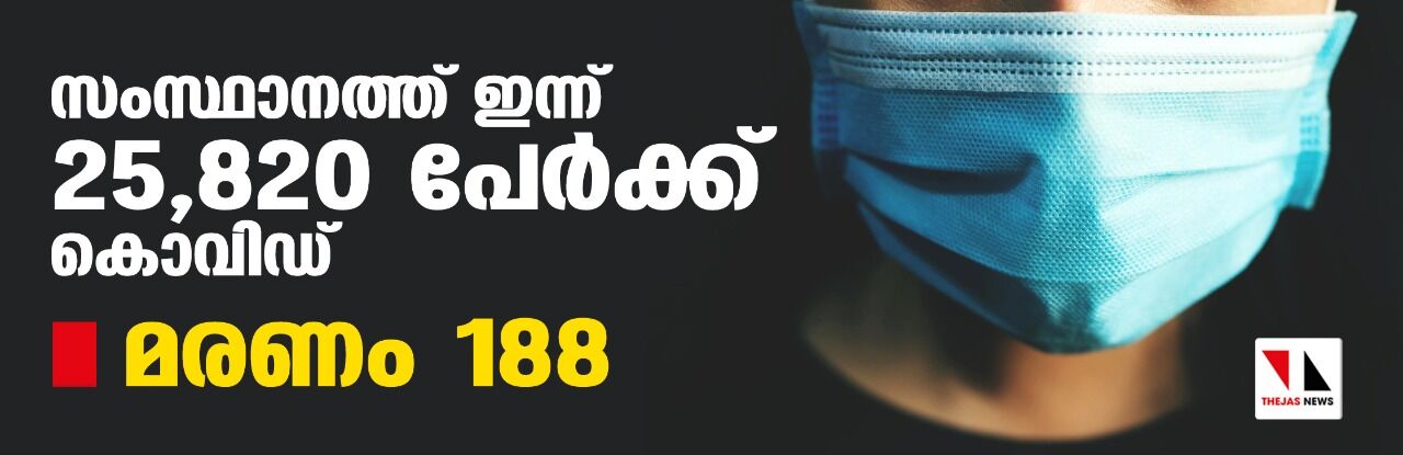 സംസ്ഥാനത്ത് ഇന്ന് 25,820 പേര്ക്ക് കൊവിഡ്; മരണം 188