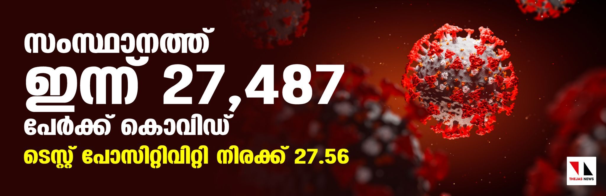 സംസ്ഥാനത്ത് ഇന്ന് 27,487 പേര്ക്ക് കൊവിഡ്; ടെസ്റ്റ് പോസിറ്റിവിറ്റി നിരക്ക് 27.56