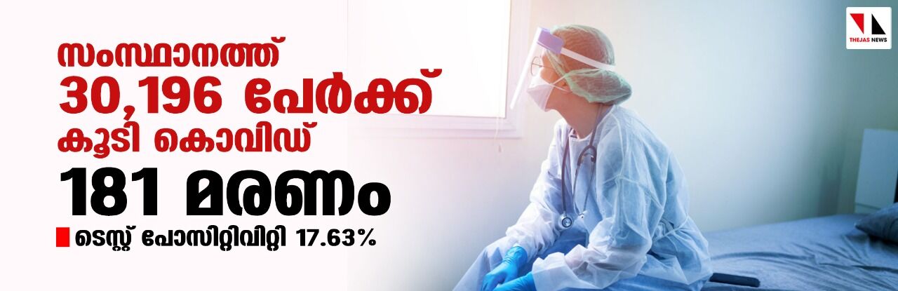 സംസ്ഥാനത്ത് ഇന്ന് 30,196 പേര്ക്ക് കൊവിഡ്; ടെസ്റ്റ് പോസിറ്റിവിറ്റി നിരക്ക് 17.63; മരണം 181