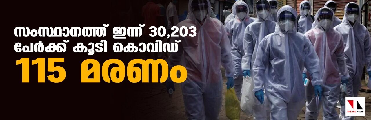സംസ്ഥാനത്ത് ഇന്ന് 30,203 പേര്ക്ക് കൊവിഡ്; ടെസ്റ്റ് പോസിറ്റിവിറ്റി നിരക്ക് 18.86; മരണം 115