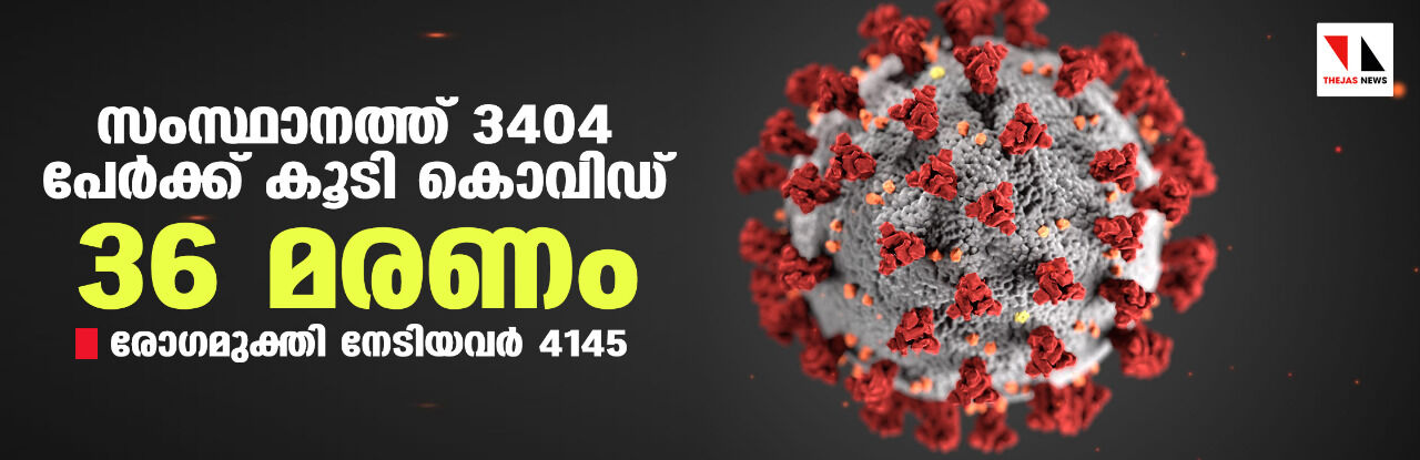 സംസ്ഥാനത്ത് ഇന്ന് 3404 പേര്ക്ക് കൊവിഡ്; മരണം 36