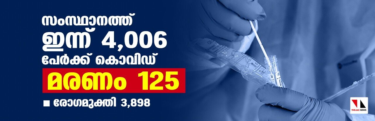 സംസ്ഥാനത്ത് ഇന്ന് 4006 പേര്ക്ക് കൊവിഡ്; മരണം 125