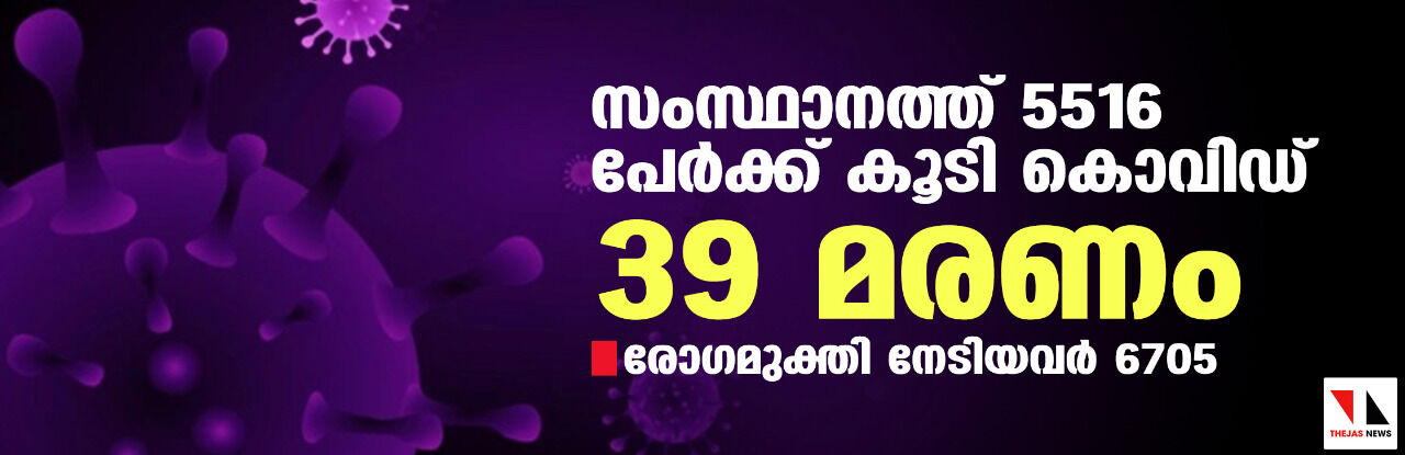 സംസ്ഥാനത്ത് ഇന്ന് 5516 പേര്ക്ക് കൊവിഡ്; മരണം 39