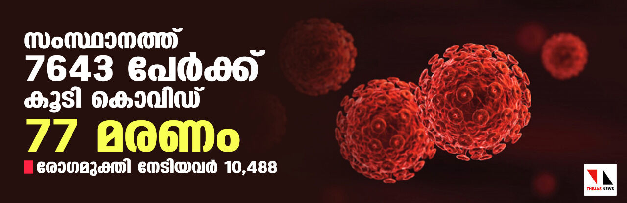 സംസ്ഥാനത്ത് ഇന്ന് 7643 പേര്ക്ക് കൊവിഡ്; മരണം 77