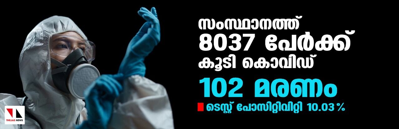 സംസ്ഥാനത്ത് ഇന്ന് 8037 പേര്ക്ക് കൊവിഡ്; ടെസ്റ്റ് പോസിറ്റിവിറ്റി നിരക്ക് 10.03; 102 മരണം