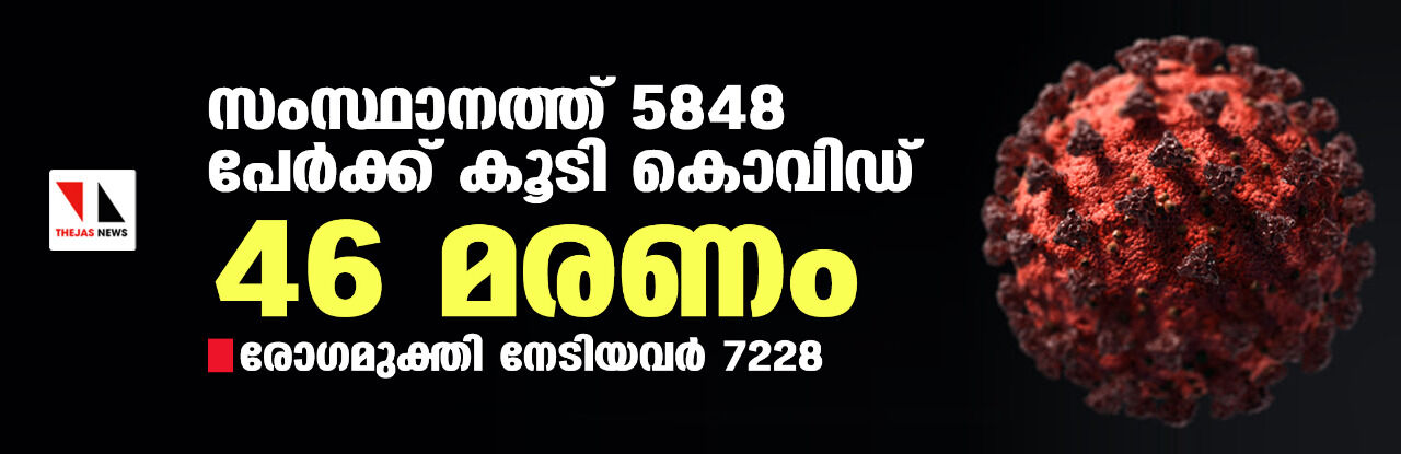 സംസ്ഥാനത്ത് ഇന്ന് 5848 പേര്ക്ക് കൊവിഡ്; മരണം 46