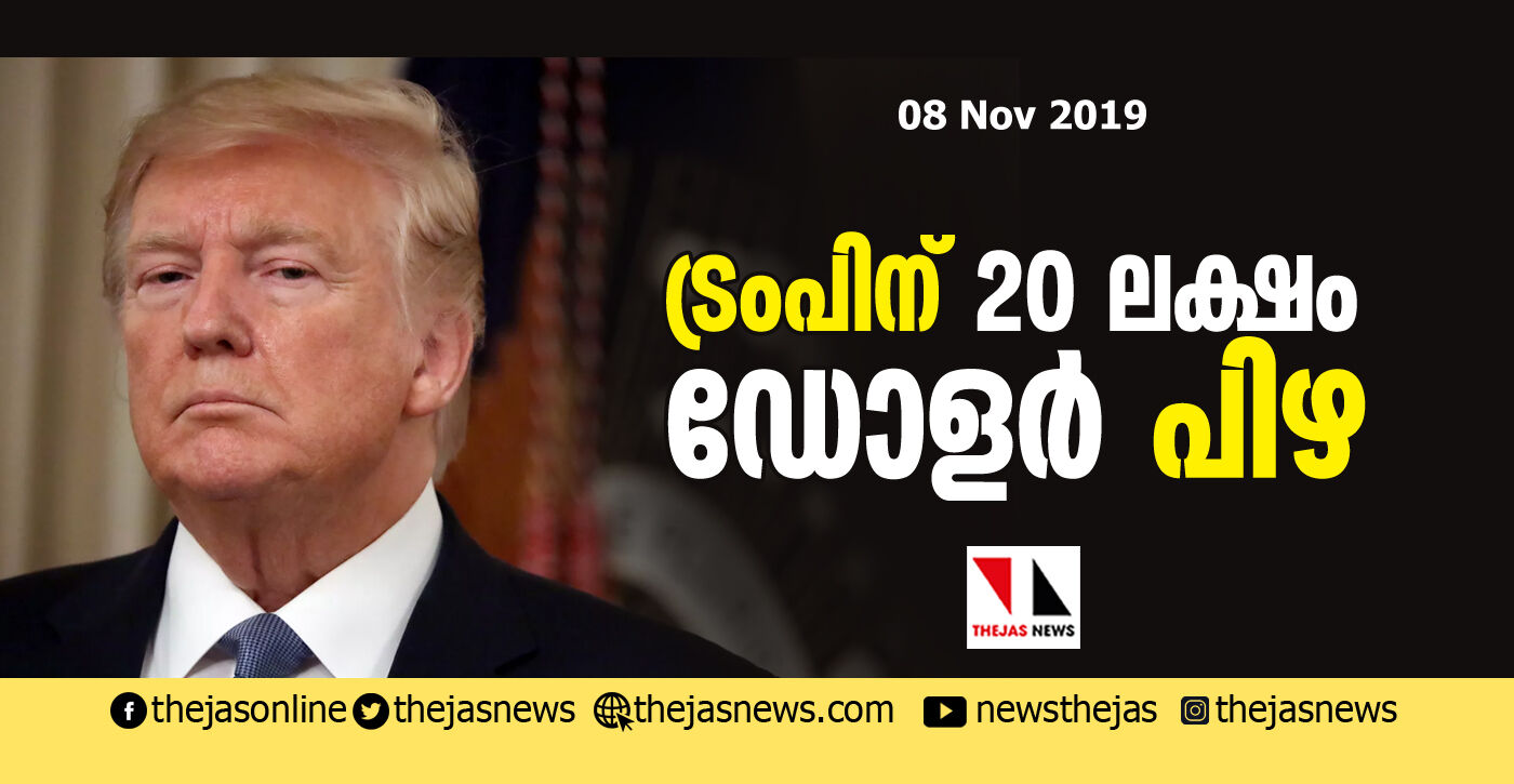 ഫണ്ട് വകമാറ്റി; ട്രംപിന് 20 ലക്ഷം ഡോളര് പിഴ ചുമത്തി ന്യൂയോര്ക്ക് കോടതി