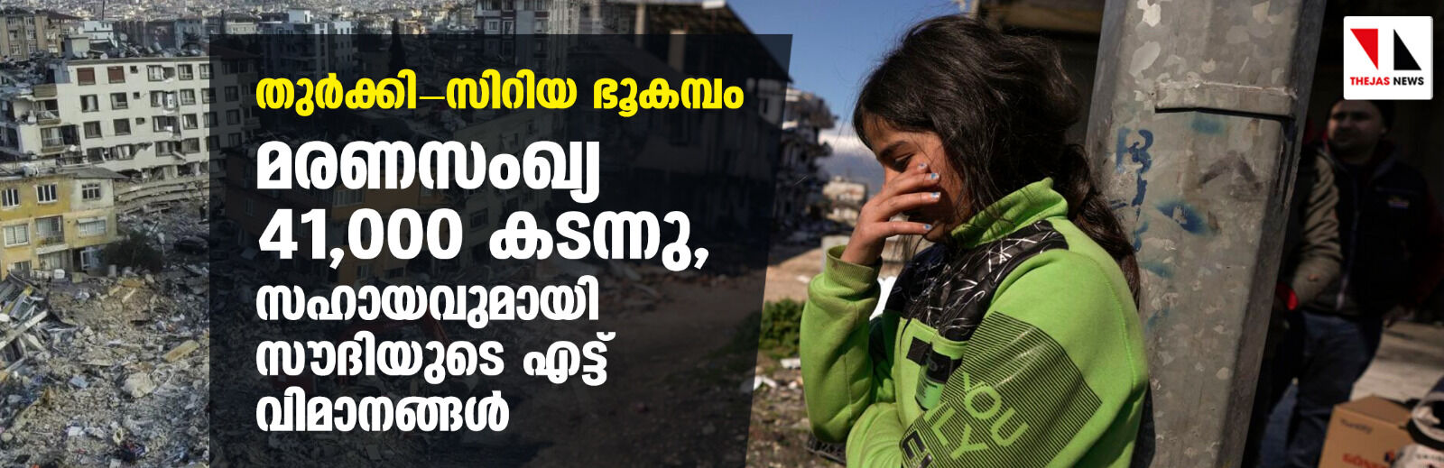 തുര്ക്കി- സിറിയ ഭൂകമ്പം; മരണസംഖ്യ 41,000 കടന്നു, സഹായവുമായി സൗദിയുടെ എട്ട് വിമാനങ്ങള്