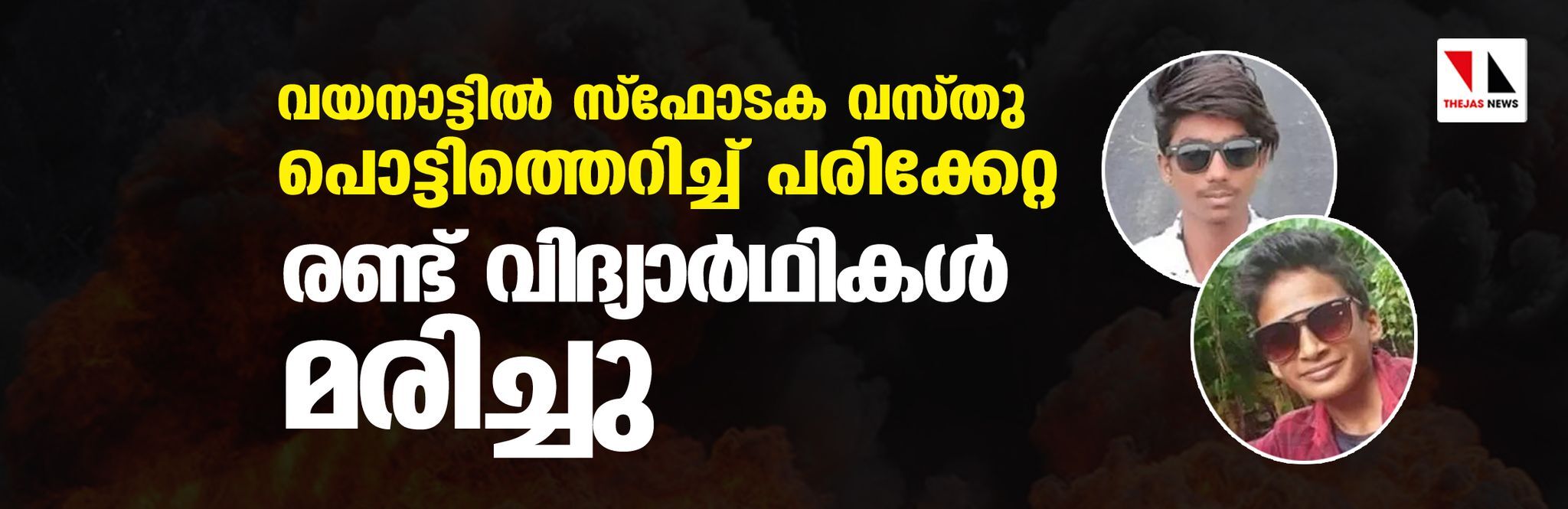വയനാട്ടില് സ്ഫോടക വസ്തു പൊട്ടിത്തെറിച്ച് പരിക്കേറ്റ രണ്ട് വിദ്യാര്ഥികള് മരിച്ചു