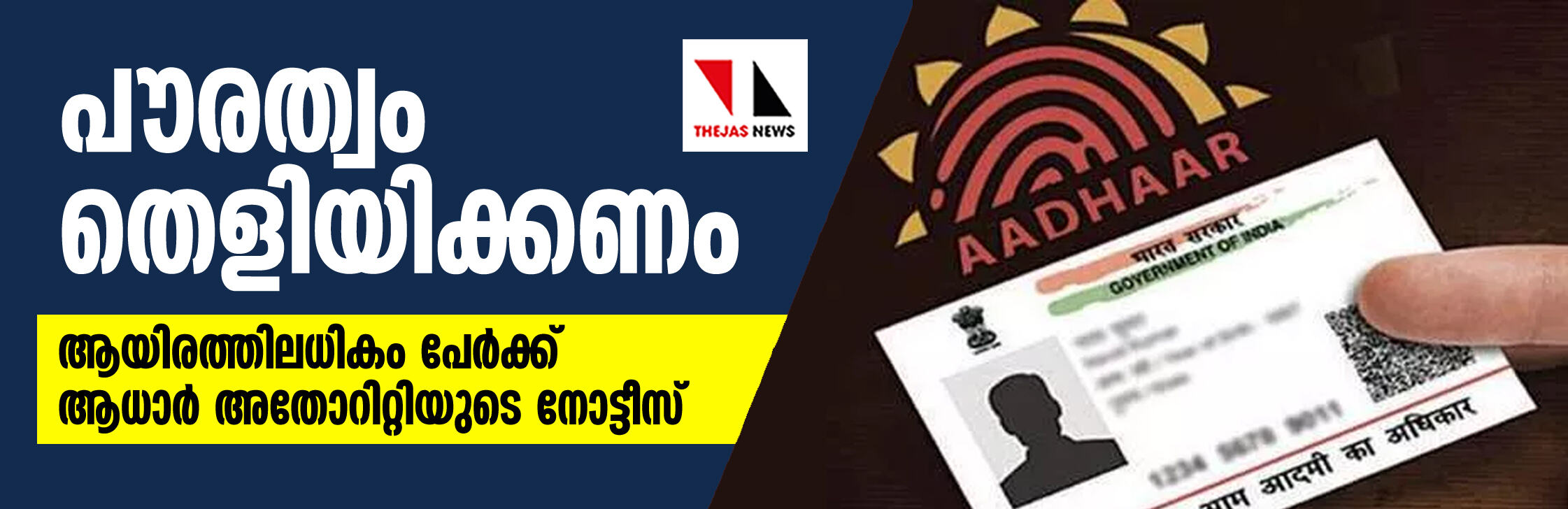 പൗരത്വം തെളിയിക്കണം; ആയിരത്തിലധികം പേര്ക്ക് ആധാര് അതോറിറ്റിയുടെ നോട്ടീസ്