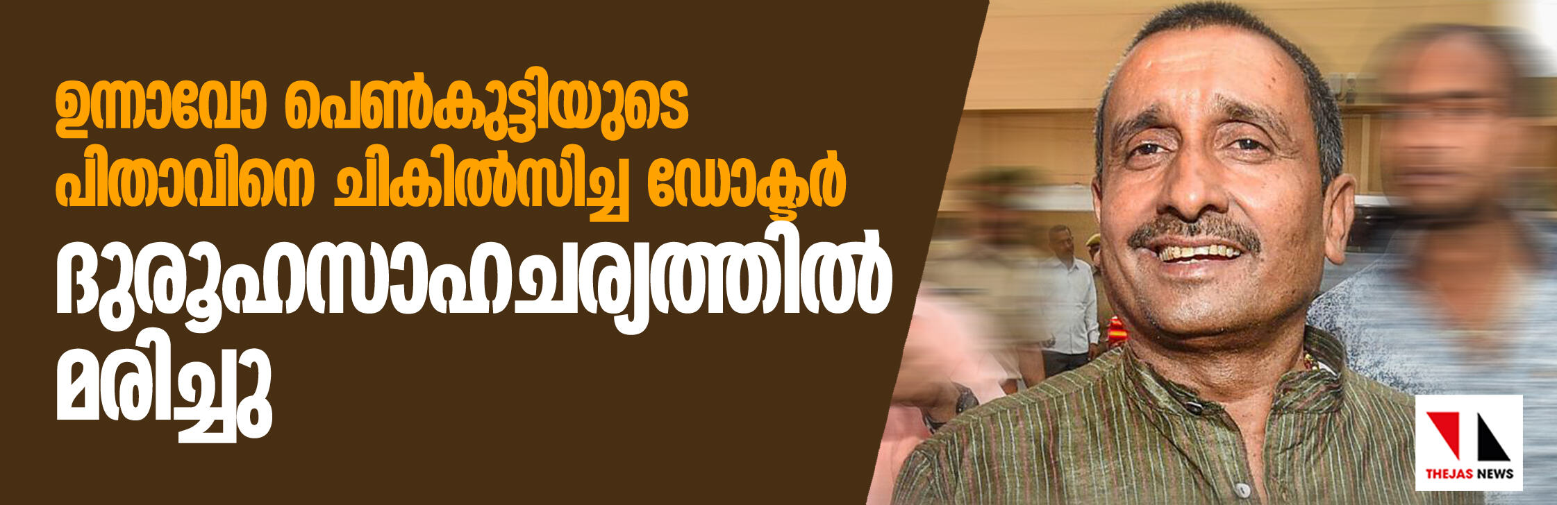 തിങ്കളാഴ്ച രാവിലെ ഡോക്ടര്ക്ക് ശ്വാസതടസ്സം അനുഭവപ്പെടുകയായിരുന്നുവെന്ന് കുടുംബാംഗങ്ങള് പറഞ്ഞതായി ഇന്ത്യാ ടി വി റിപോര്ട്ട് ചെയ്തു. എന്നാല് ആശുപത്രിയില് പോവാന് അദ്ദേഹം ആദ്യം സമ്മതിച്ചിരുന്നില്ല. പിന്നീട് ആശുപത്രിയില് എത്തിച്ചെങ്കിലും ജീവന് രക്ഷിക്കാനായില്ല. ഡോക്ടര് പ്രമേഹരോഗിയായിരുന്നുവെന്നും ബന്ധുക്കള് പറഞ്ഞു. മൃതദേഹം പോസ്റ്റുമോര്ട്ടം ചെയ്യാനായി അയച്ചിട്ടുണ്ട്. ബലാല്സംഗക്കേസില് ബിജെപി നേതാവും എംഎല്എയുമായിരുന്ന കുല്ദീപ് സിങ് സെന്ഗാര് ജീവപര്യന്തം തടവുശിക്ഷ അനുഭവിക്കുകയാണ്. ഇദ്ദേഹം ഇപ്പോഴും തിഹാര് ജയിലില് കഴിയുകയാണ്. സെന്ഗറിന്റെ സഹോദരന് അതുലാവട്ടെ, പെണ്കുട്ടിയുടെ പിതാവിന്റെ മരണവുമായി ബന്ധപ്പെട്ട കേസില് റിമാന്റിലാണ്.