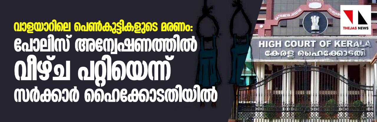 വാളയാറിലെ പെണ്കുട്ടികളുടെ മരണം: പോലിസ് അന്വേഷണത്തില് വീഴ്ച പറ്റിയെന്ന് സര്ക്കാര് ഹൈക്കോടതിയില്