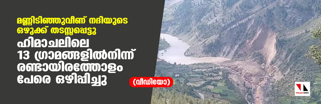 മണ്ണിടിഞ്ഞുവീണ് നദിയുടെ ഒഴുക്ക് തടസ്സപ്പെട്ടു; ഹിമാചലിലെ 13 ഗ്രാമങ്ങളില്നിന്ന് രണ്ടായിരത്തോളം പേരെ ഒഴിപ്പിച്ചു (വീഡിയോ)