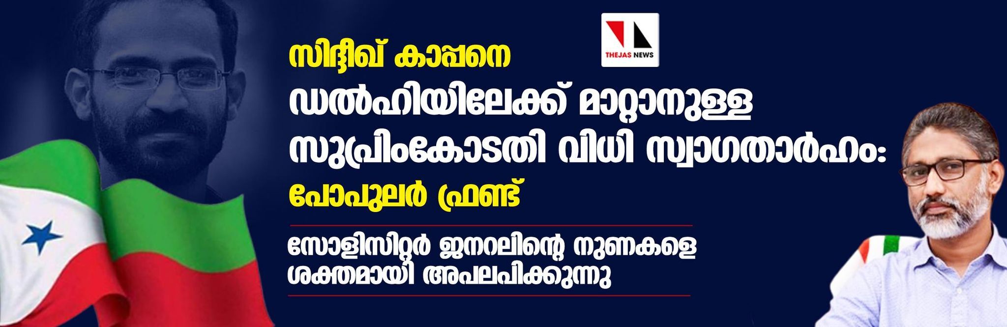 സിദ്ദീഖ് കാപ്പനെ ഡല്ഹിയിലേക്ക് മാറ്റാനുള്ള സുപ്രിംകോടതി വിധി സ്വാഗതാര്ഹം: പോപുലര് ഫ്രണ്ട്