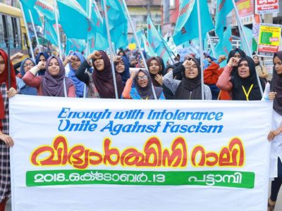 പട്ടാമ്പി: ഫാഷിസത്തിനെതിരേ പെണ് പ്രതിരോധം തീര്ത്ത് കാംപസ് ഫ്രണ്ട് നടത്തിയ വിദ്യാര്ഥിനി മേഖലാ സമ്മേളനത്തില് പ്രതിഷേധമിരമ്പി. ഇനഫ് വിത്ത് ഇന്റോളറന്സ്, യുനൈറ്റ് എഗൈന്സ്റ്റ് ഫാഷിസം എന്ന പേരില് ഇന്നലെ വൈകീട്ട് 4ന് പട്ടാമ്പിയില് നടന്ന റാലിയിലാണ് പെണ്കരുത്തില് പ്രതിഷേധത്തിന്റെ അലയൊലികള് സൃഷ്ടിച്ചത്. ഫാഷിസത്തിന്റെ ഭീകരതയെ തുറന്ന് കാണിച്ചുള്ള പ്ലക്കാര്ഡുകളുമേന്തിയായിരുന്നു പ്രകടനം. തുടര്ന്ന് നടന്ന പൊതുസമ്മേളനം കാംപസ് ഫ്രണ്ട് ദേശീയ പ്രസിഡന്റ് പി വി ഷുഹൈബ് ഉദ്ഘാടനം ചെയ്തു.